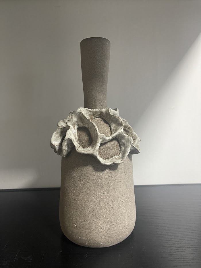 Stoneware vase with driftwood