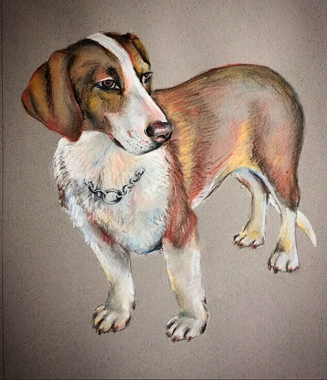 Dog dry pastel drawing