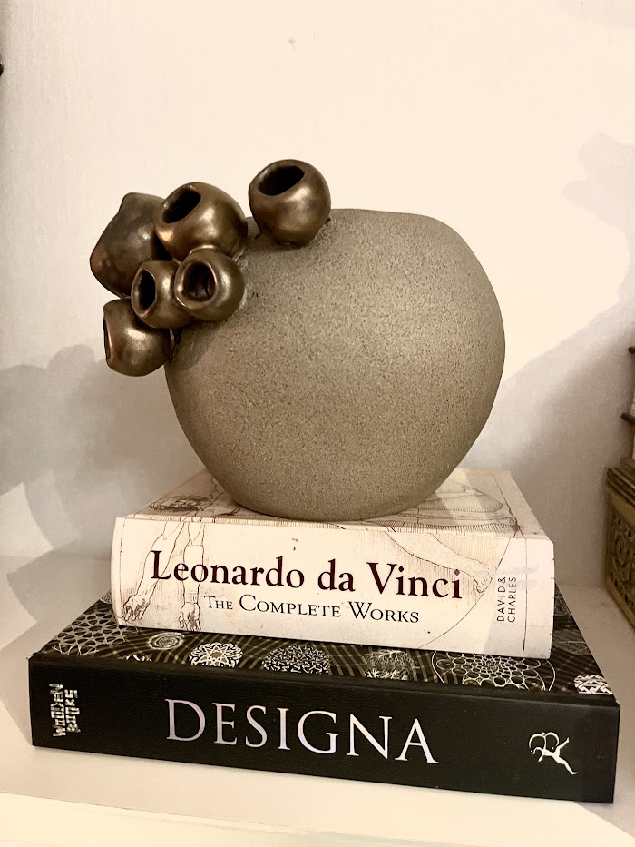 Stoneware vase with driftwood