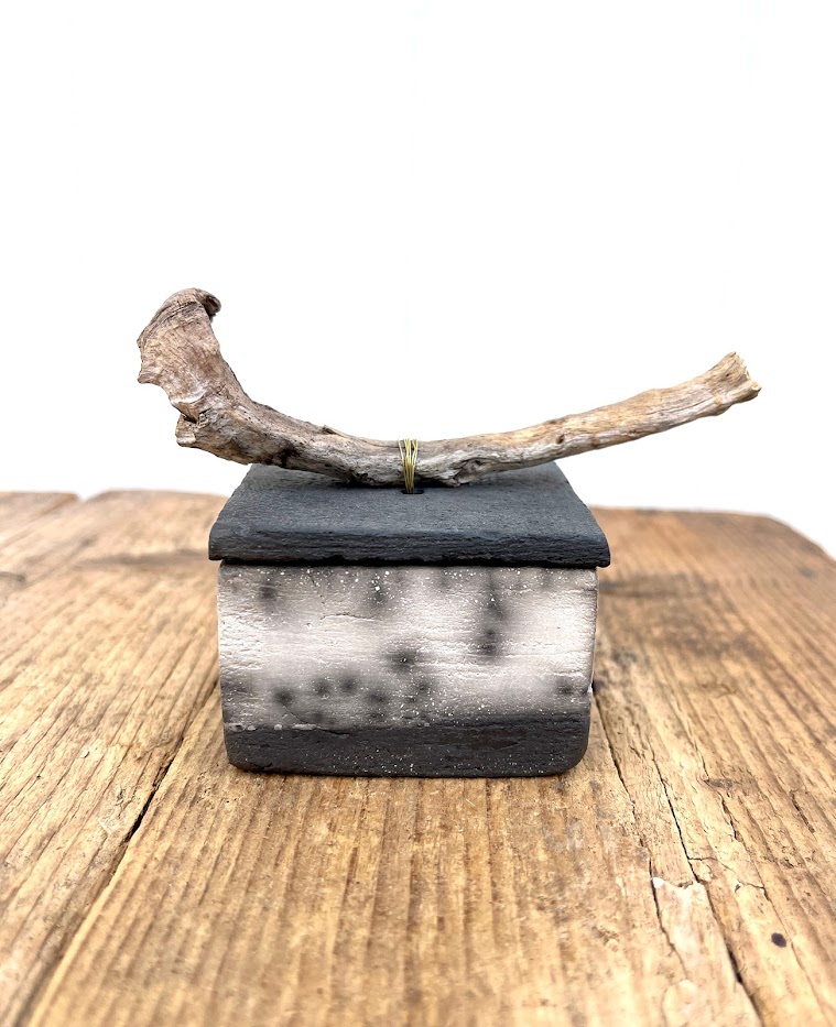 Raku box with driftwood