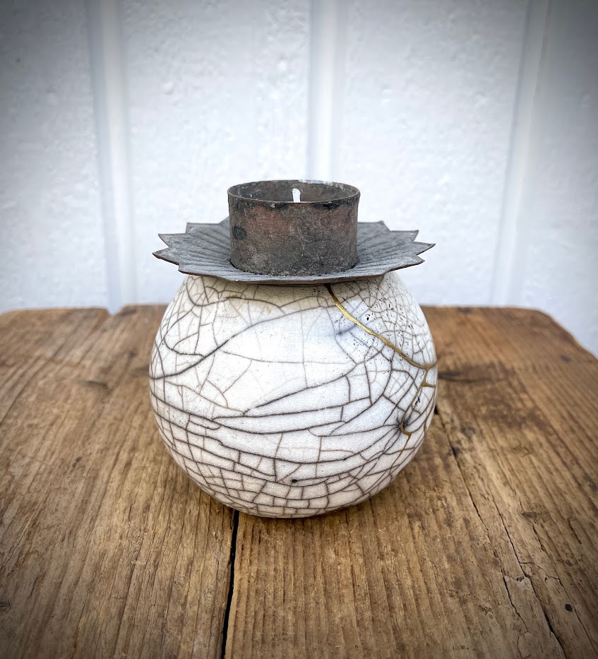 Raku candle holder with kintsugi details in gold SOLD quantity