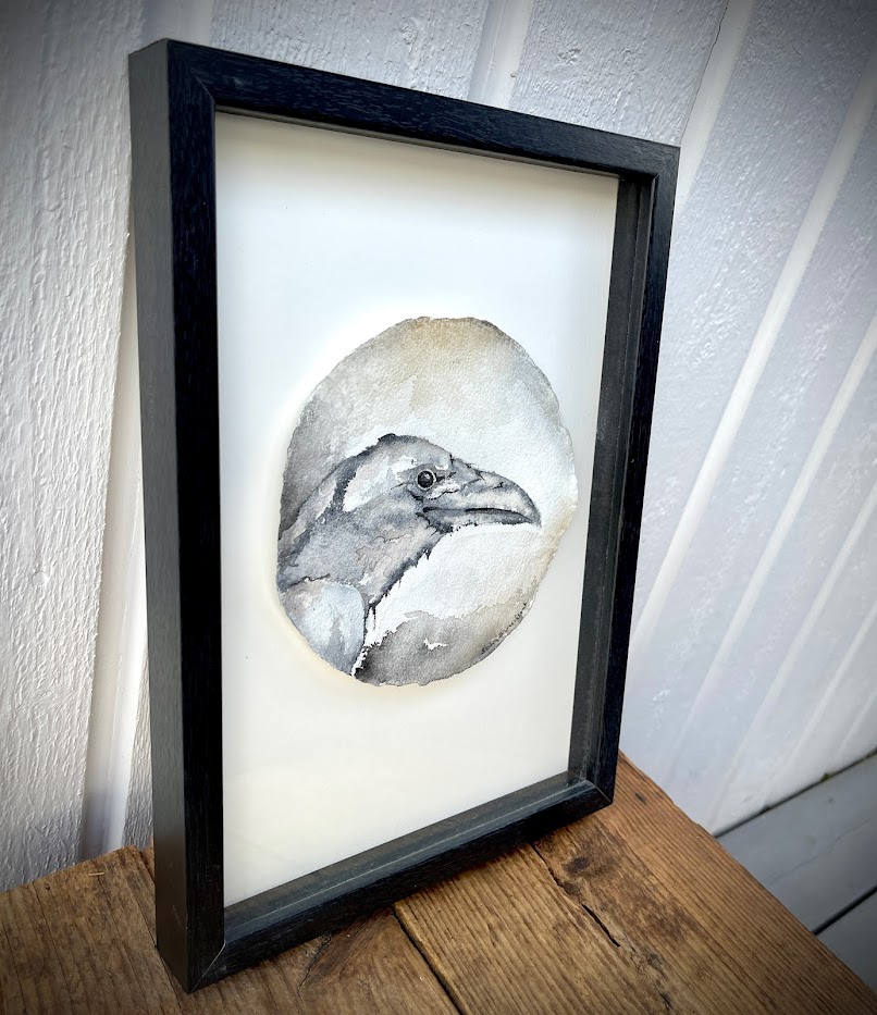 Painted on a round watercolour paper mounted with spacer and framed in a frame 13x32cm