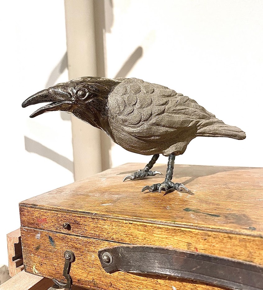Stoneware raven with metal feet. Hight about 8cm