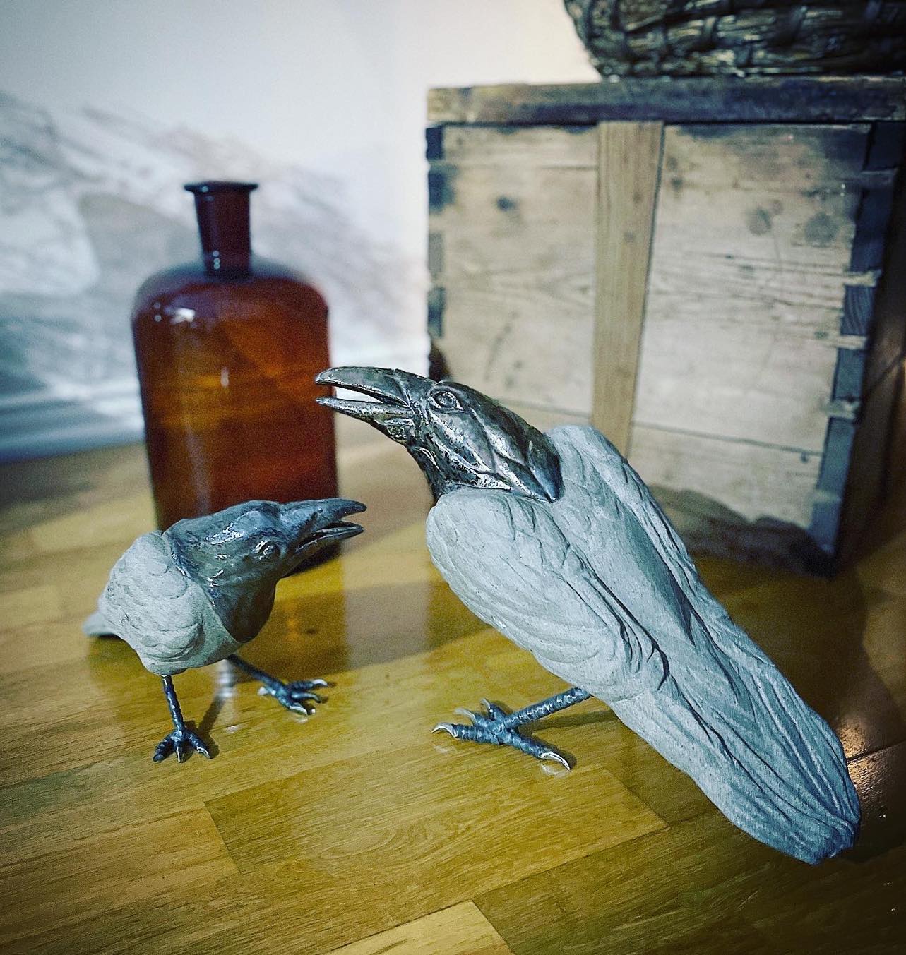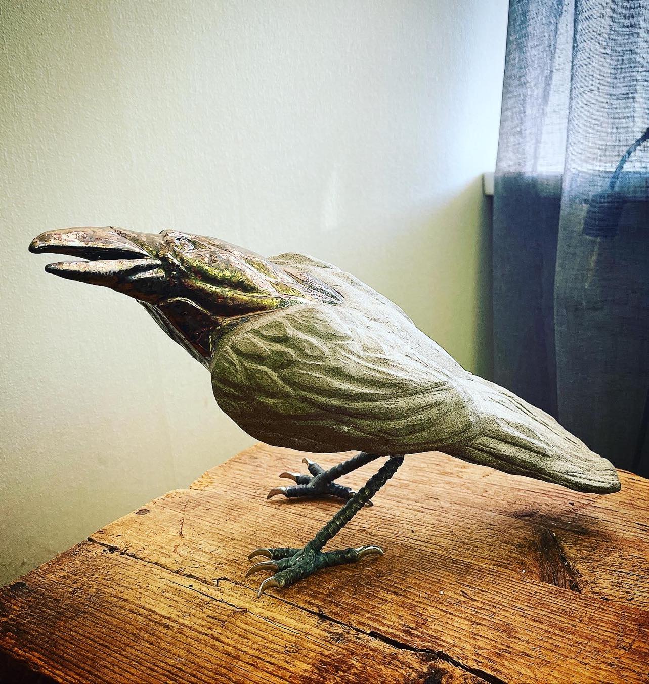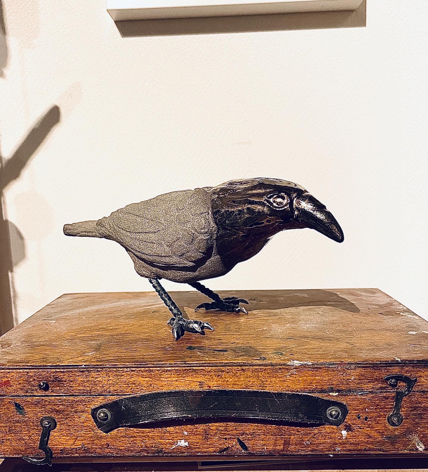 Stoneware raven on metal feet. Hight about 19cm and about 38cm long