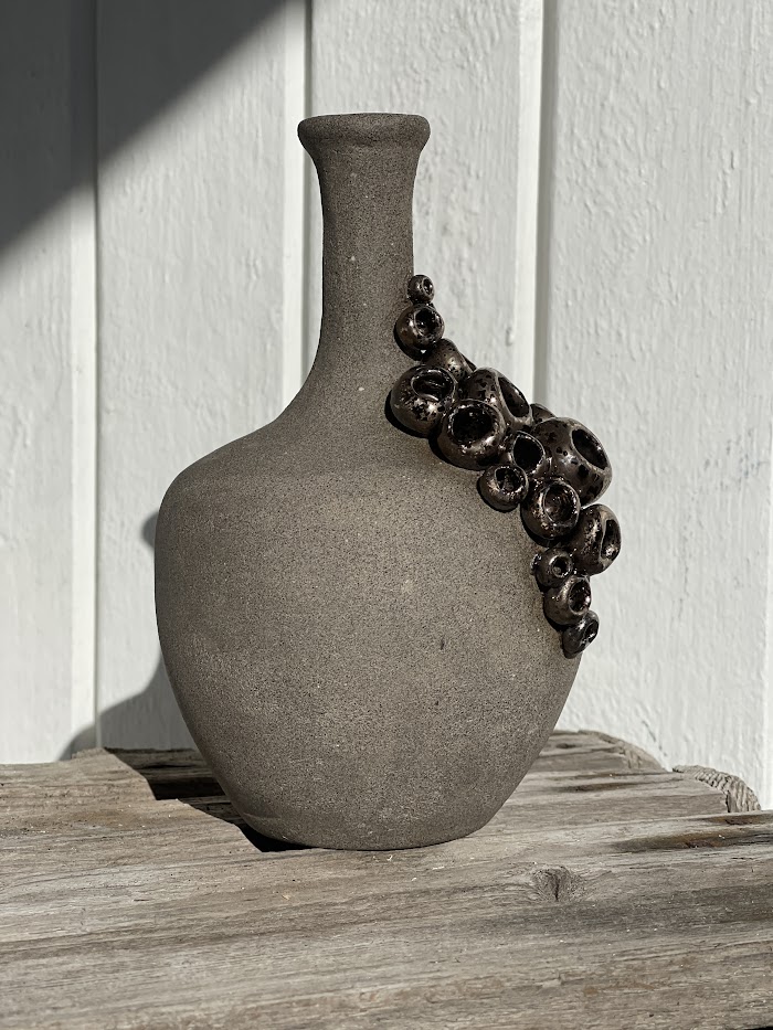 Stoneware vase with driftwood